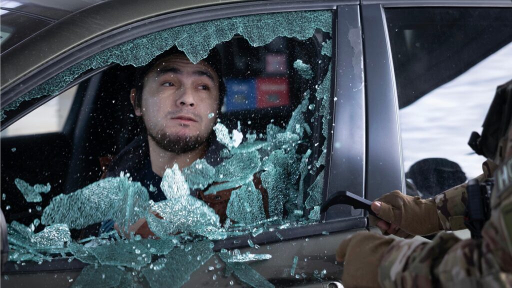 U.S. Border Patrol agents smash a man’s car window before dragging him out and taking him into custody when he failed to present citizenship documentation at a gas station on Jan. 11, 2026, in St. Paul, Minn.